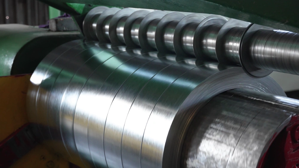 Precision slicing of steel coils into narrower strips for specific applications, ensuring minimal waste and maximum efficiency.