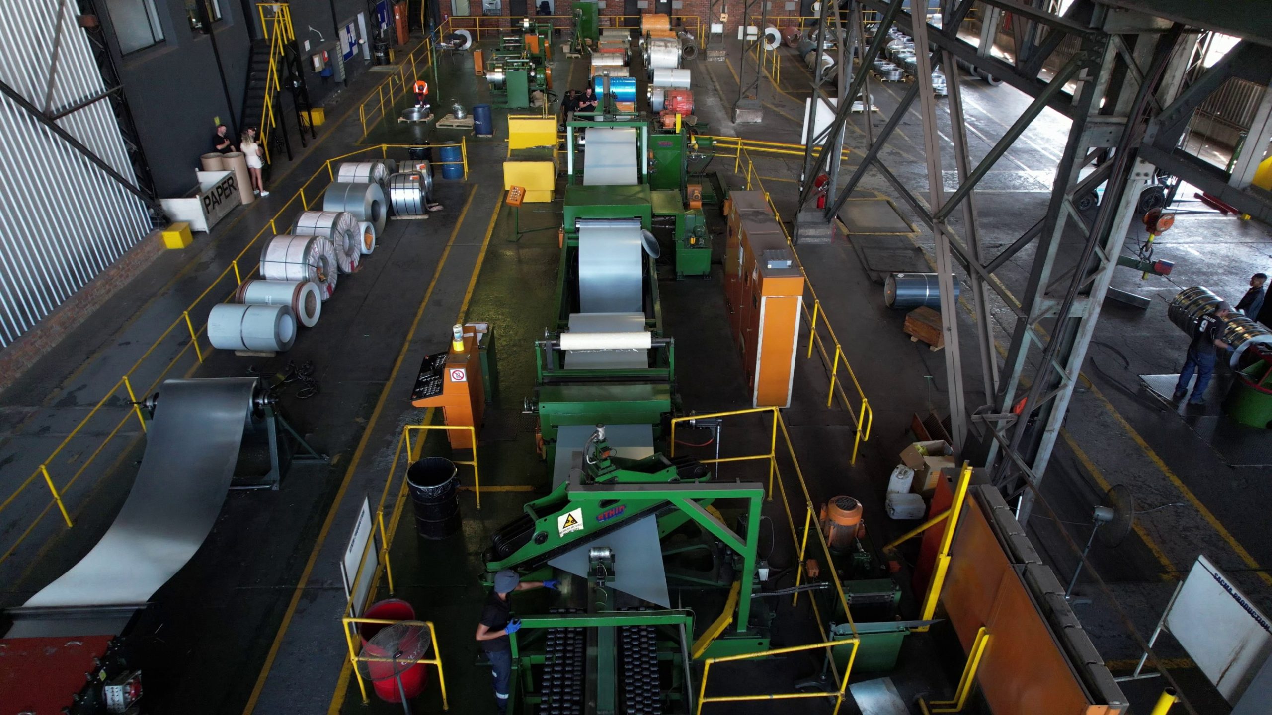 Unwinding steel coils into flat sheets with exact lengths and specifications, ready for further processing or fabrication.